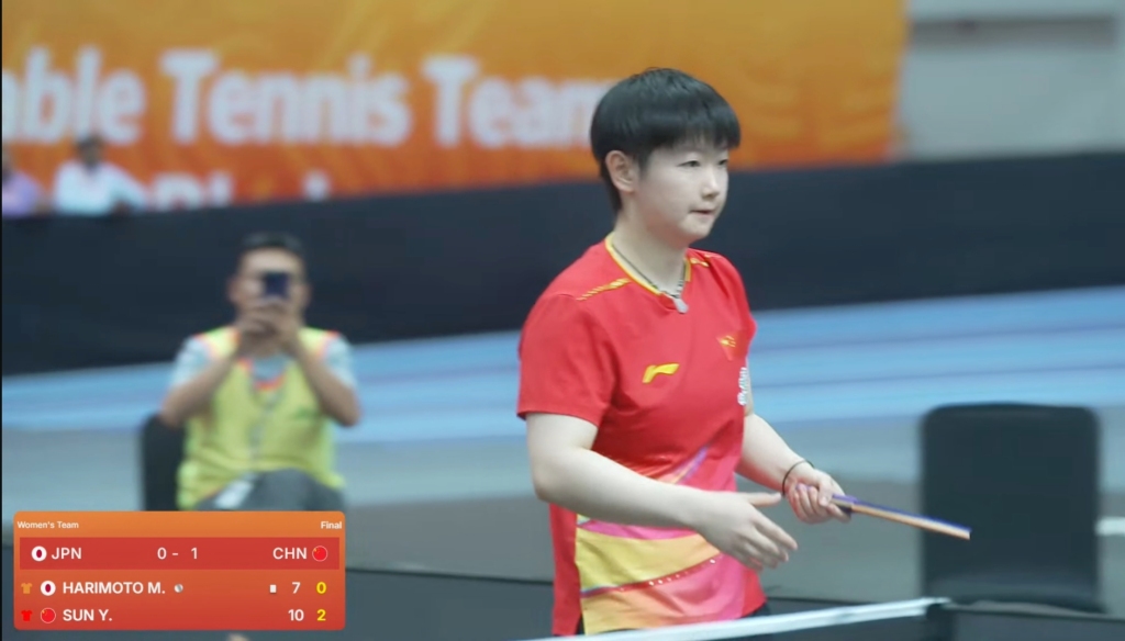 决赛首盘由王曼昱对阵桥本帆乃香,后者今年对阵国乒队员战绩极佳,一度取得对阵国乒队员11连胜的战绩,王艺迪、钱天一等多位国手先后折戟,直到WTT横滨冠军赛遇到孙颖莎,连胜才被终结。